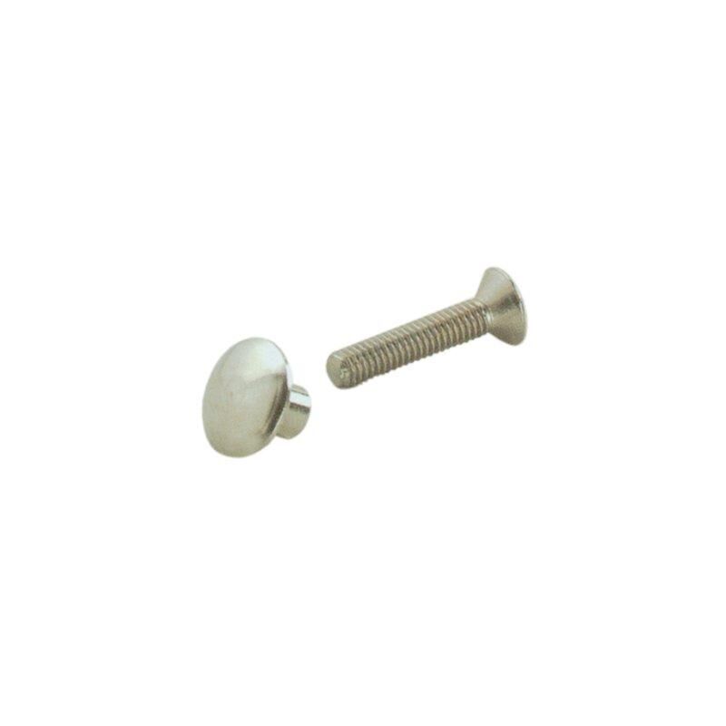 VITE SEDIA OTTONE NICHELATO + BORCHIA VITE M 4 MM 30 CF=PZ100 In ottone nichelato. Testa Mm. 12.