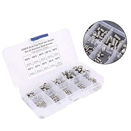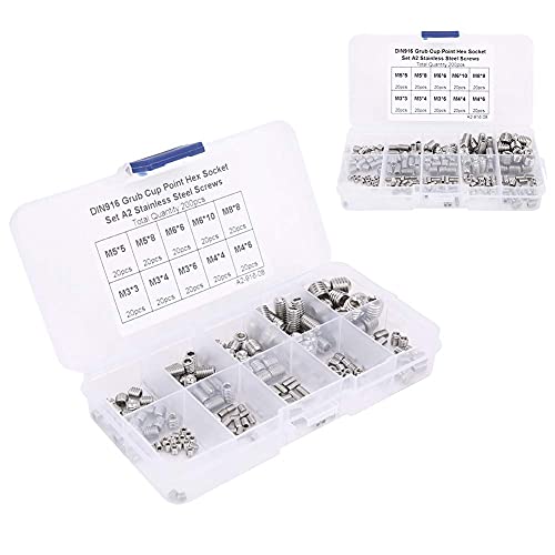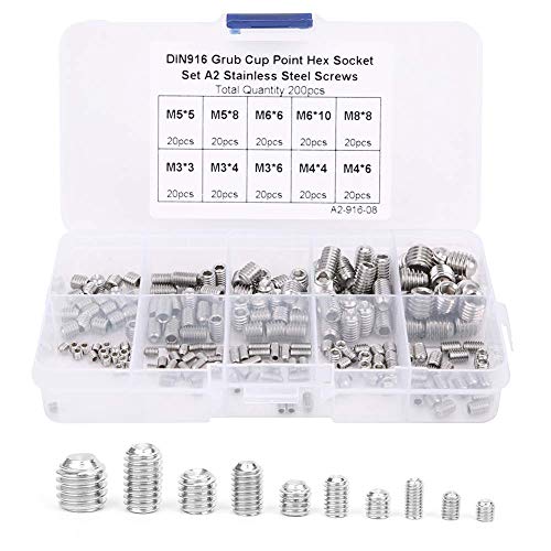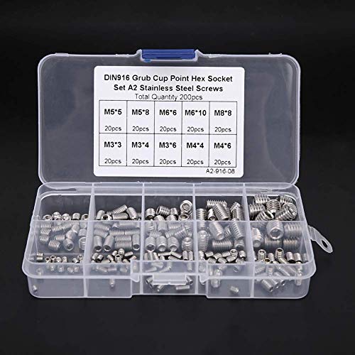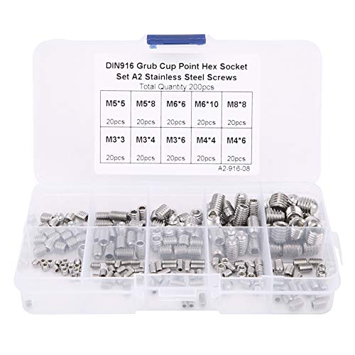 Vite senza testa in acciaio inossidabile-200 pezzi Vite senza testa con esagono incassato a punta in acciaio inossidabile per strumento preciso M3/M4/M5/M6/M8