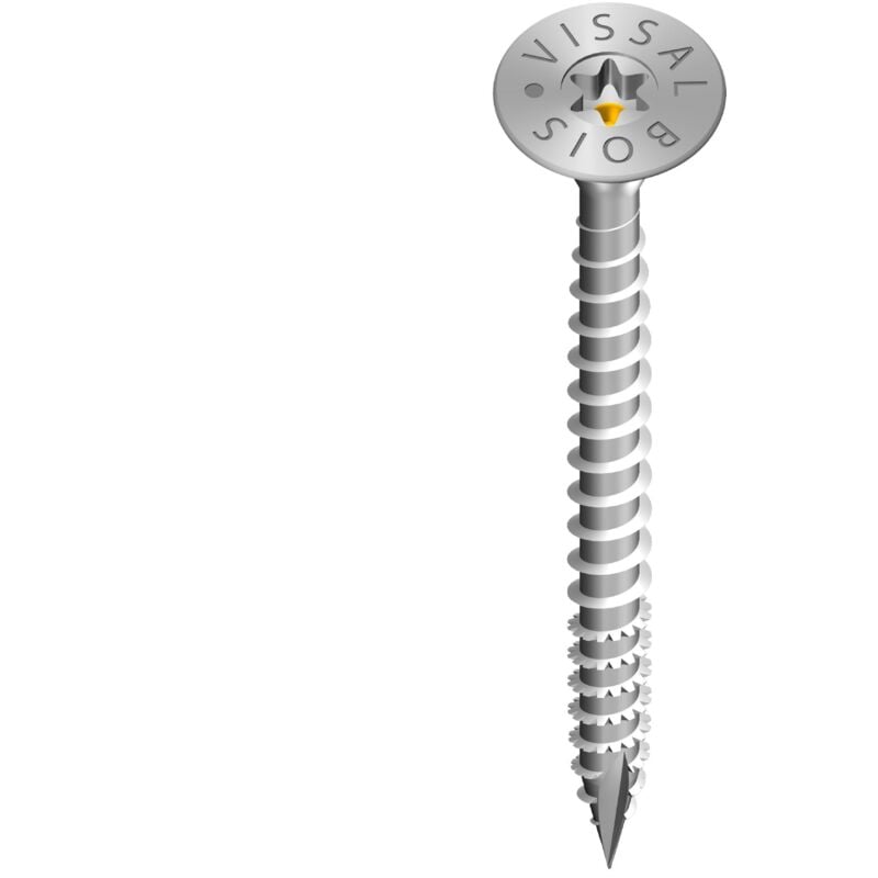 Informazioni sul prodotto: Vite speciale per legno VissalBois, zincata Materiale: acciaio zincato TX testa svasata Molte misure disponibili Confezione: scatola da 100 / 200 / 500 Marchio: VissalBois
