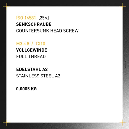 Vite a testa svasata M3 × 8 (ISO 14581 TORX, Acciaio inossidabile A2, Completamente filettato) TX10 - 25 Pezzi