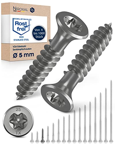 Vite a testa svasata TORX V2A in acciaio inossidabile 5-mm di spessore - Lunghezza della vite di 25-mm - 100 pezzi - Filettatura parziale di 18-mm Vite per legno 5x25 A2