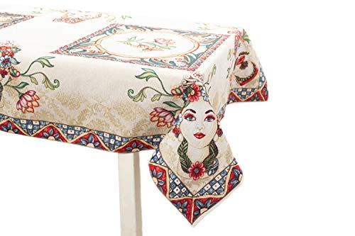Viterbo Biancheria Tovaglia Copritavolo Tessuto Gobelin Teste Di Moro Stile Siciliano Occhi Celesti (140x180Cm (7618))