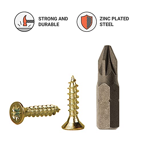 Viti in acciaio zincato giallo per legno e truciolare, viti universali, completamente filettate, con testa svasata a croce (confezione da 500 unità, 3,0 x 10 mm)