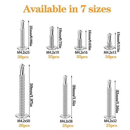 7 FORMATI MISTI: 20 pezzi M4.2 * 50 mm / 25 pezzi M4.2 * 38 mm / 25 pezzi M4.2 * 32 mm / 30 pezzi M4.2 * 25 mm / 35 pezzi M4.2 * 19 mm / 35 pezzi M4.2 * 16 mm / 50 pezzi M4. 2*13mm;