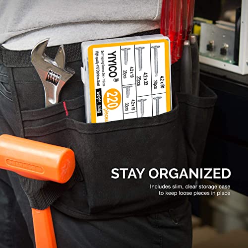Viti Autofilettanti Viti Autoperforanti per Metallo Assortimento Viti Acciaio Inox 220PZ 13mm 16mm 19mm 25mm 32mm 38mm 50mm Vite di Foratura a Testa Piatta Set 7 Dimensioni