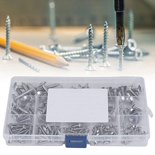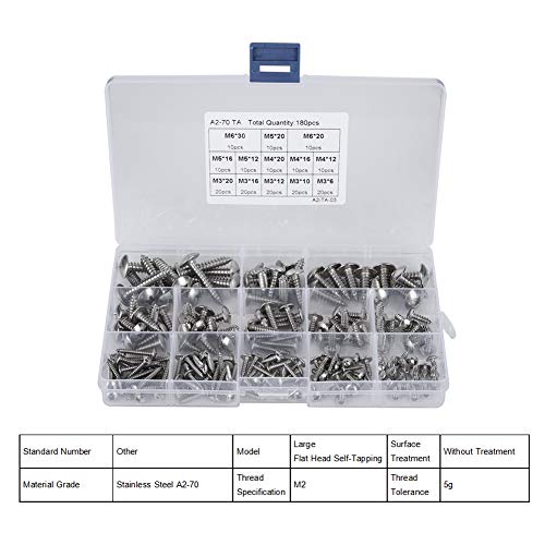 Viti Autofilettanti da 180 Pezzi, Set di Assortimento di Viti A Testa Piatta in Acciaio inossidabile M3 M4 M5 M6