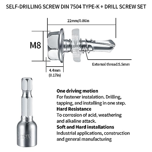 Materiale squisito: le viti autoperforanti a testa esagonale sono realizzate in acciaio inossidabile di alta qualità, con elevata resistenza, elevata durezza, non facili da rompere, resistenti alla corrosione e alla ruggine e possono mantenere buone prestazioni in ambienti difficili, durevoli.