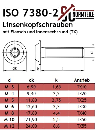Viti a brugola con flangia e (ISR)-ISO 7380-2 TX, in acciaio inox A2 V2A, in confezione da 50