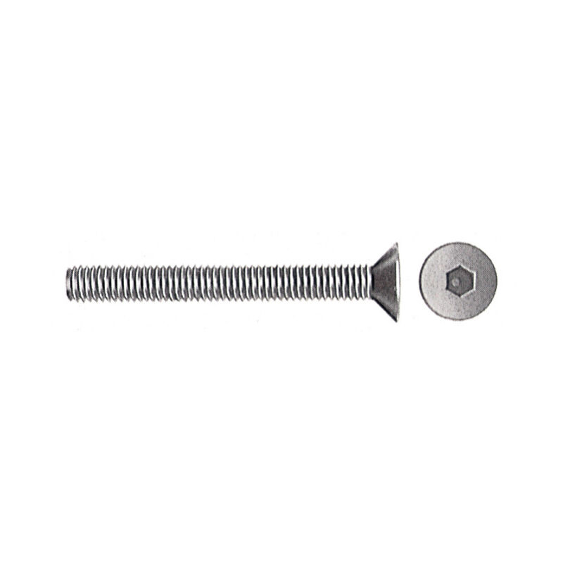 Testa svasata piana. Esagono incassato. Filettatura 6MA Lunghezza 50 mm Finitura brunito L'offerta ed i prezzi si riferiscono a 10 pz. per confezione