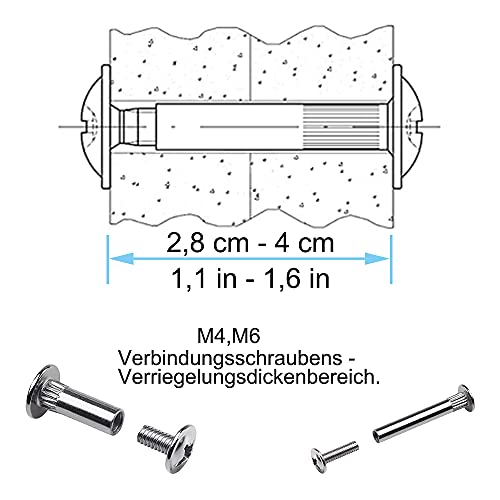 Viti di Connessione, Connettori per Armadi, per il Collegamento e il Fissaggio di Pannelli con uno Spessore di 2,8-4 cm, M4 / M6, 50 Pezzi