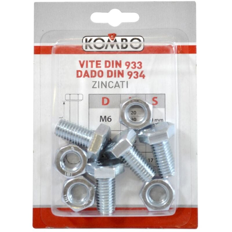 Set di 4 viti m10 x 20 din933 classe di resistenza 4.8 + 4 dadi m10 din934 zincati bianchi