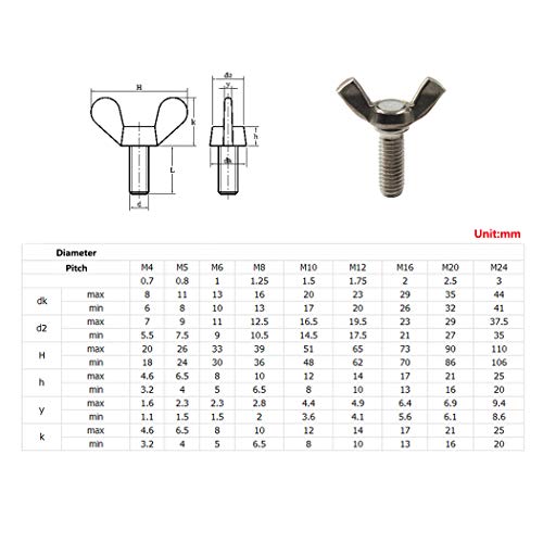 Set di viti a farfalla in acciaio inox 304 M6x45 Mano Twist Vite a farfalla Set 20PCS