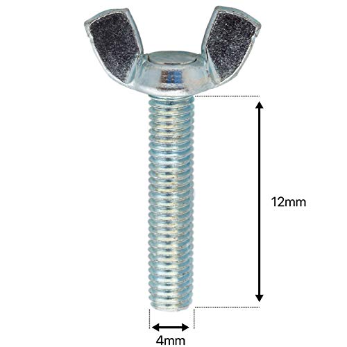 Viti a farfalla M4 (4 mm x 12 mm), viti a farfalla a vite per pollice in acciaio (confezione da 10)