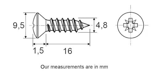 Viti a lamiera, testa in acciaio inox A4 svasata, bombata, 4,8 mm x 16 mm, DIN 7983, lotto di 15