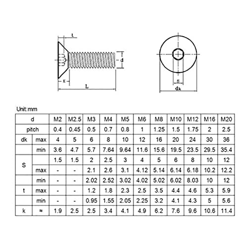 Viti in legno M4 M5 M6 M8 M10 Black Suotersunk Head Hexagon Socket Vite DIN Bolt Din7991 ad alta resistenza 10.9 Acciaio al carbonio (Dimensions: M4x5(20pcs))