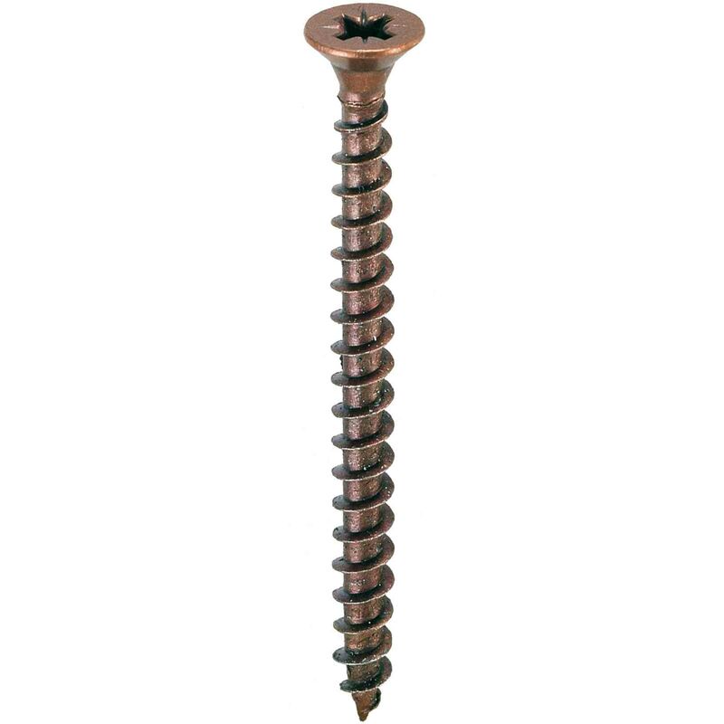 5,0 CE Di VITI PER LEGNO T. S. P. BRONZATE 5 X25 Mod. 05052 in acciaio bronzato per pannelli di legno truciolare conglomerato. Taglio a croce PZ. Testa svasata piana. Diametro 5 mm Lunghezza 25 mm