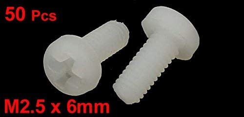 Viti per macchina a testa bombata a croce Phillips M2,5 x 6 mm in nylon bianco 50 pezzi