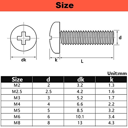 M2 M2.5 M3 M4 M5 M6 M8 Viti Phillips in rame Viti a testa bombata in ottone Bullone a croce, M3