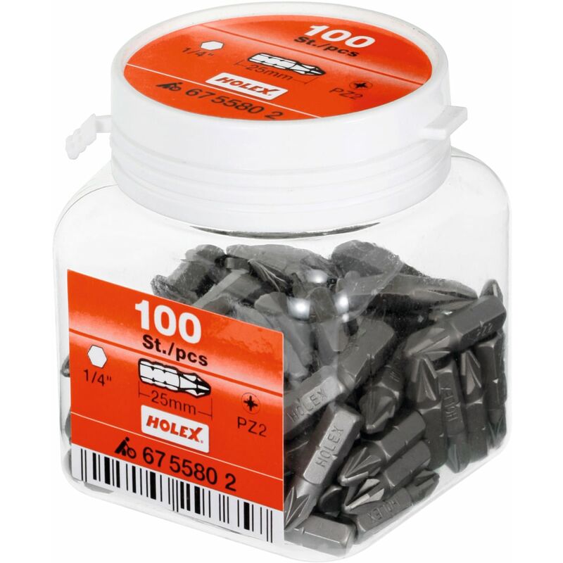 Per l'alloggiamento in impugnature portainserti o avvitatori elettrici con attacco esagonale oppure per l'alloggiamento in attacchi n. art. 675000 − 675050. Uso: Per viti con impronta a croce Pozidriv DIN 3128. Norma: DIN 3126 C 6,3 (1/4 Zoll) Materiale: Lega speciale al cromo-vanadio, tenace. Dati tecnici Confezione grande da 100 pz. sì Tipo di prodotto Utensile bit Lunghezza complessiva, mm 25 Codolo esagonale per bit C 6,3 Dimensione dell'impronta a croce 1