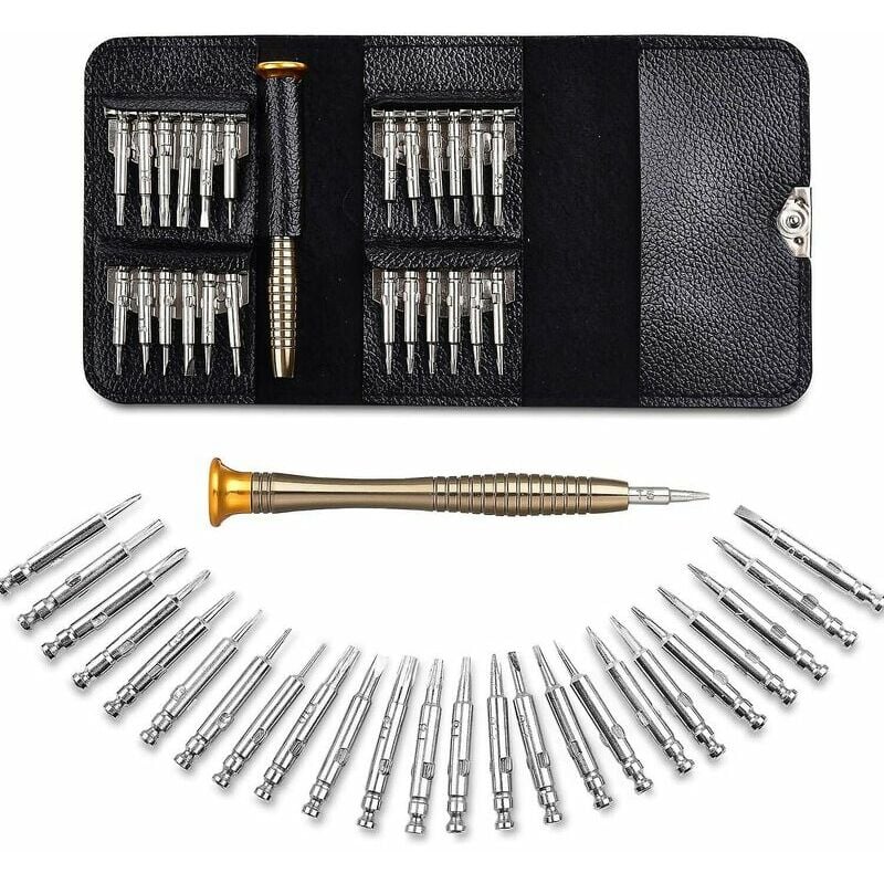 MATERIALE DI ALTA QUALITÀQuesto cacciavite di precisione è realizzato in acciaio per utensili, mentre l'ago è in acciaio 45, punta per cacciavite ad alta precisione, acciaio di fascia alta, trattamento termico speciale, l'intero set di strumenti è sostenibile. . MULTI-SIZEKit che includono un set di cacciaviti 25 in 1: Cacciavite a cinque stelle: 0.8 1.2, Cacciavite Torx: T2 T3 T4 T5 T6 T7 T8 T9 T10 T15, Cacciavite a triangolo: 2.3, Cacciavite a Y: 2.0, Phillips cacciavite: 1.0 1.2 1.5 2.0 3.0, cacciavite a lama piatta: 1.0 1.5 2.0 3.0, cacciavite a punta: 0.8, questi vari tipi di cacciaviti sono sufficienti per i lavori di manutenzione quotidiana e per risolvere facilmente i problemi di manutenzione. . DESIGN DI PRECISIONEFilettatura superficiale antiscivolo, il design del cuscinetto di coda può aiutarti ad allentare le viti più saldamente ogni punta del cacciavite è molto adatta per l'impugnatura, il tipo magnetico consiste nel posizionare la punta del cacciavite direttamente
