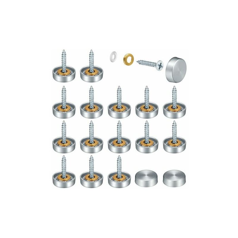 Design lucidato a specchio - I nostri tappi a vite in acciaio inossidabile sono progettati con bordi lisci, lucidati a specchio, senza sbavature, spessore adeguato, senza segni di saldatura ed aspetto elegante. 【Aspetto elegante e moderno】 Le viti dello specchio spazzolate sono a forma di spirale, la copertura decorativa copre perfettamente le viti esposte, l'aspetto argentato e il trattamento spazzolato rendono le viti più belle e aggiungono un aspetto elegante. 【Accessori completi】16 set di chiodi per copertura per fissaggio a vite dello specchio includono quattro parti: cappuccio in acciaio inossidabile, vite, anello in rame e rondella, sufficienti per l'uso quotidiano. 【 Materiale di alta qualità】 Lo specchio decorativo a vite argentato è realizzato in acciaio inossidabile, impermeabile e antiruggine. Gli anelli e le rondelle sono realizzati rispettivamente in rame e gomma morbida, con funzioni di bloccaggio e antiscivolo. 【Installazione e applicazione】 Basta praticare un foro da