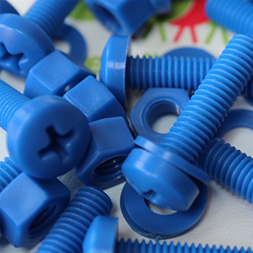 20 x Viti a Testa Arrotondata Blu Polipropilene (PP) Dadi e bulloni di plastica, M5 x 20mm, Rondelle