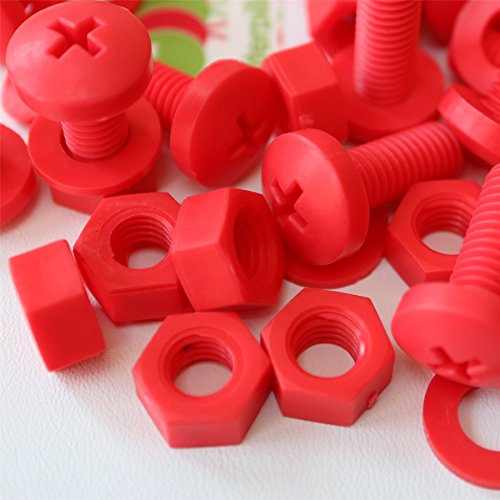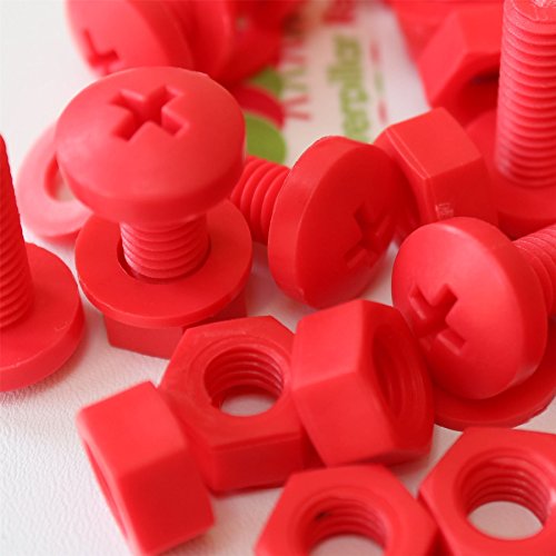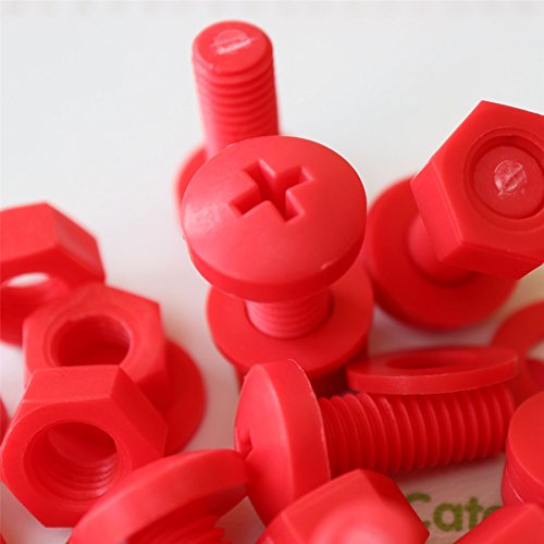 20 x Viti a Testa Arrotondata Rossi Polipropilene (PP) Dadi e bulloni di plastica, M8 x 20mm, Rondelle
