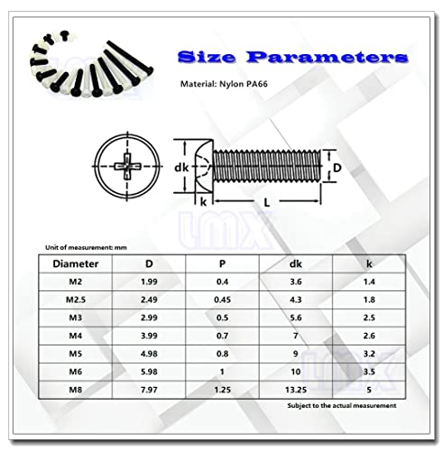 100 viti a testa cilindrica Phillips in nylon bianco metrico M3 (3 mm) × 4 mm