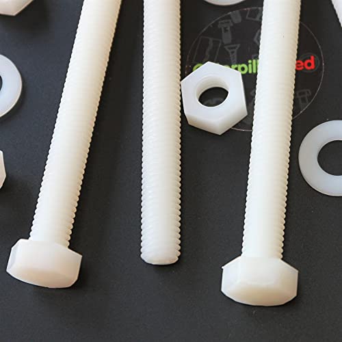 10x Viti a Testa Esagonale Nylon Naturale, M10 x 100mm, Dadi e bulloni di plastica, Rondelle, Nylon Naturale