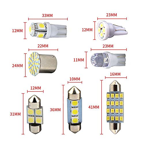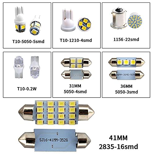 *1. Questo kit LED bianco xenon interno includerà le seguenti lampadine, adatte per applicazioni generali all'interno del veicolo, come cupole, mappe, porte, vani portaoggetti, targhe, ecc.