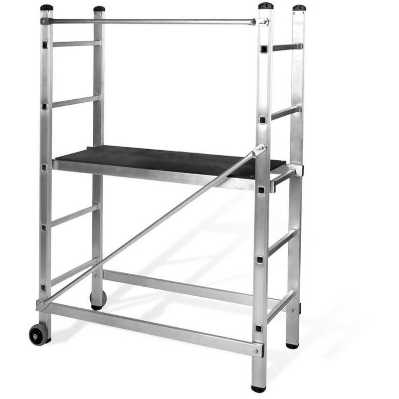 VITO ALLUMINIO. MULTIPO con cuscinetti antiscivolo Ideale per i vostri lavori di pittura e bricolage a casa o al lavoro. Struttura in alluminio di alta qualità Dimensioni vassoio:110x40cm Altezza di lavoro 3 metri Facile montaggio senza utensili.