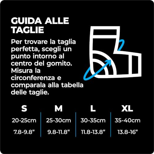 Supporto per gomiti per uomo e per donna ed è disponibile in più taglie, controlla la tabella nelle immagini per la tua taglia corretta