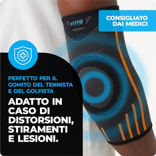 VITTO Tutore Epicondilite Gomito - Gomitiera per Tendinite, Muscoli Articolazioni e Bodybuilding. Tutore Gomito per Uomo e Donne (S, Blu)