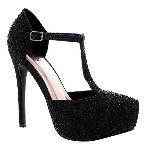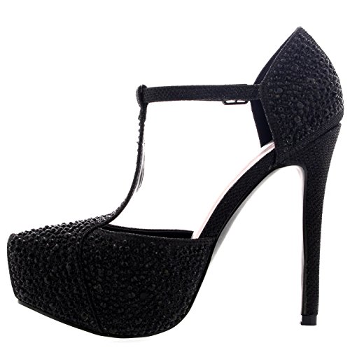 VIVA Donna Stiletto Diamante T-Strap Piattaforma Partito Serata Tacchi Alti