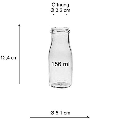 Viva Haushaltswaren - 32 bottigliette in Vetro a Collo Largo, 156 ml, per succhi di Frutta, con Imbuto del Diametro di 5 cm
