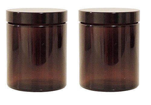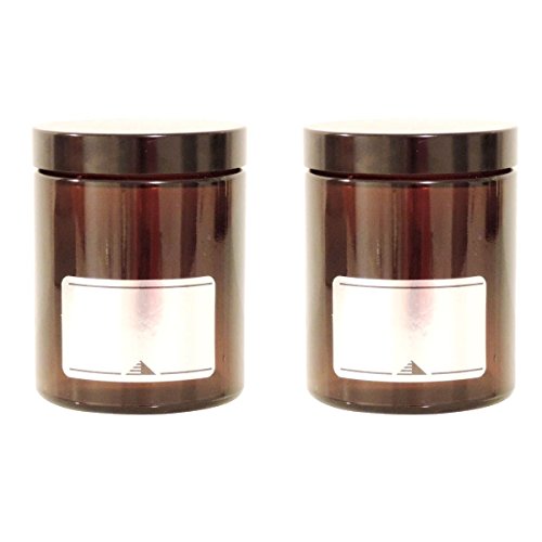2 barattoli di vetro (incluse 2 etichette per scrivere) in vetro marrone di qualità farmaceutica, per creme, pomate, spezie, ecc. Con tappo a vite in bachelite nero