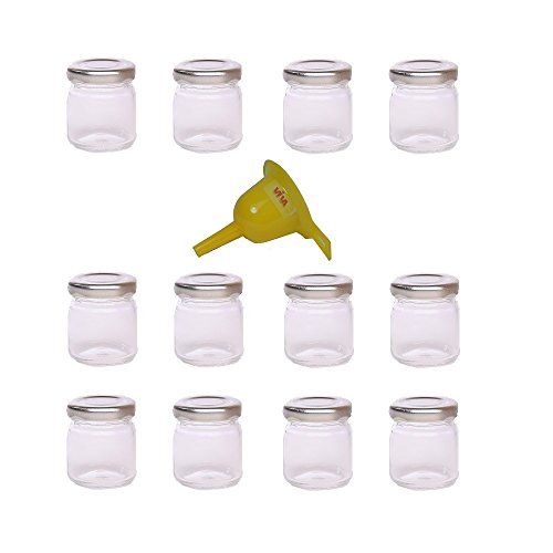 Viva Haushaltswaren - 12 Mini vasetti da marmellata, con Coperchio a Vite Argentato, capacità 53 ml, con Mini Imbuto