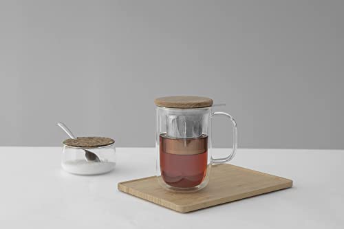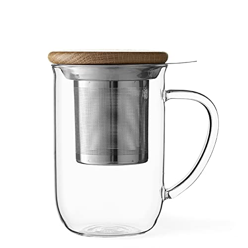Viva Scandinavia Tazza da tè in vetro borosilicato con coperchio in legno, tazza con infusore rimovibile in acciaio inossidabile, tè alla rinfusa, tè alle foglie 0.5 L