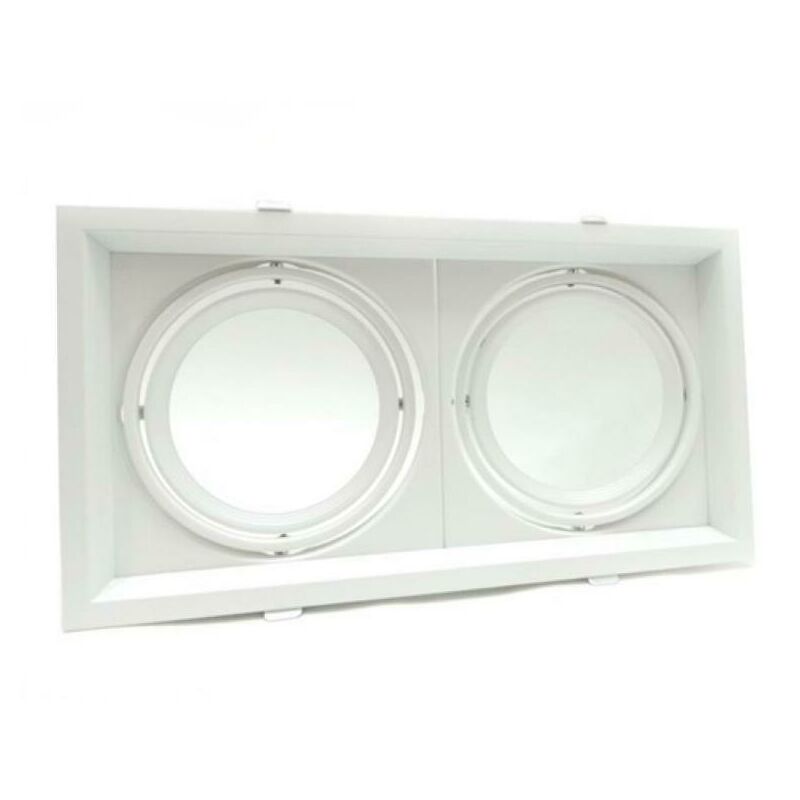PORTALAMPADA PER FARETTO LED INCASSO DA 2 INSERTI GHIERA ORIENTABILE Grazie a un solido design questi faretti di nuova generazione rappresentano la soluzione ideale per l'illuminazione spot e generica nel settore ricettivo. Caratteristiche tecniche: color bianco non sono incluse le lampadine Montare faretti 230v oppure 12v AR111 led Diametro del foro incasso: 160mmx310mm Profondita' max 45mm Classe di efficienza energetica: A+ COSA C'è DA SAPERE SULLA TECNOLOGIA LED: Risparmio energetico fino al 90% Oggi la tecnologia LED più moderna consente un risparmio energetico fino al 90% rispetto alle soluzioni luminose tradizionali. Una lampadina a risparmio energetico, ad esempio, consuma 150 watt. I prodotti LED invece, consumano mediamente da 5 a 20 watt garantendo lo stesso quantitativo illuminante, quindi consente un risparmio fino al 90% sui costi energetici. Ciclo di vita: 15.000 ore L'efficienza energetica delle lampadine LED garantiscono una durata fino a 15.000/20.000 ore. Una