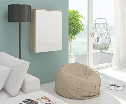 VIVALDI Scrivania Pieghevole - HIDE - 60 cm - Rovere Sonoma Chiaro / Bianco Lucido senza illuminazione LED
