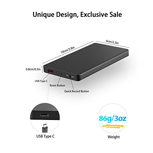【Tempo di registrazione lungo 350 ore e batteria da 2500 mAh】 Dotato di una potente batteria ricaricabile da 2500 mAh, può registrare ininterrottamente per 350 ore o 15 giorni a 192 kbps dopo essere stato completamente caricato per 6 ore tramite cavo USB TIPO C. Salvataggio automatico della registrazione quando la batteria si sta esaurendo. Ideale per le persone che richiedono registrazioni a lungo termine o che non amano le ricariche frequenti