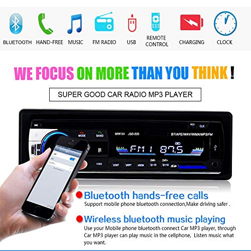 Supporta il vivavoce Bluetooth: l'autoradio ha la sua funzione Bluetooth, che può essere collegata al telefono cellulare tramite Bluetooth. È possibile riprodurre formati di file audio come MP3/WMA/WAV/APE/FLAC. Supporta le chiamate in vivavoce, rispondi alle chiamate e fornisce protezione per una guida sicura. La potenza di uscita di questa autoradio è 4X45W.