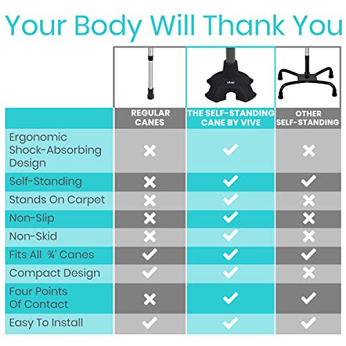 Vive Canna Tip - Quad gomma cuscinetto di ricambio per canne da passeggio - stabile quattro punti, supporto per treppiedi quadrupla autoportante per canna - attacco universale a 4 gambe per bastone