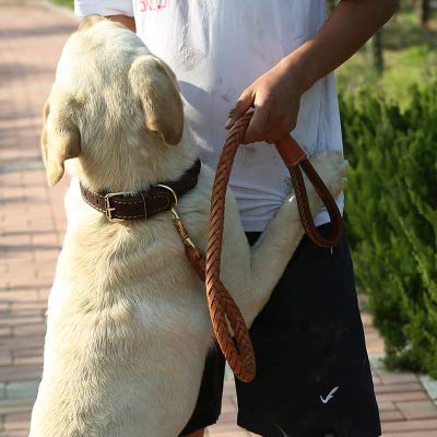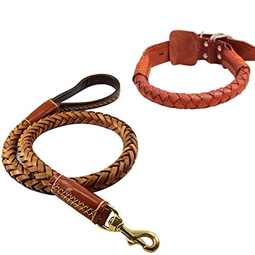 Vivi Bear Guinzaglio per Cani + Collare per Cani nel Set Marrone Lusso,Durevole, Morbido, in Vera Pelle, Intrecciato,per Cani di Grossa Taglia S(53cm*2.5cm)