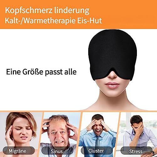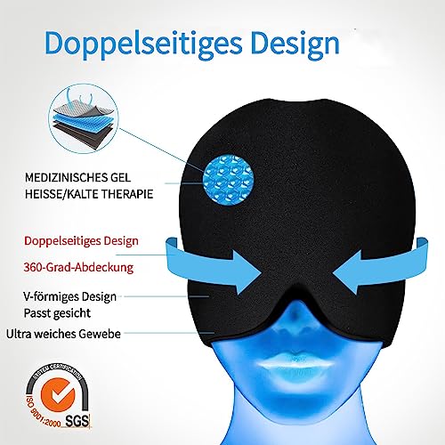Vivicool Cuffia per alleviare l'emicrania, per terapia calda e fredda, per alleviare il mal di testa, maschera per impacco freddo e mal di testa(front +back Gel)