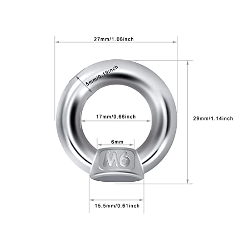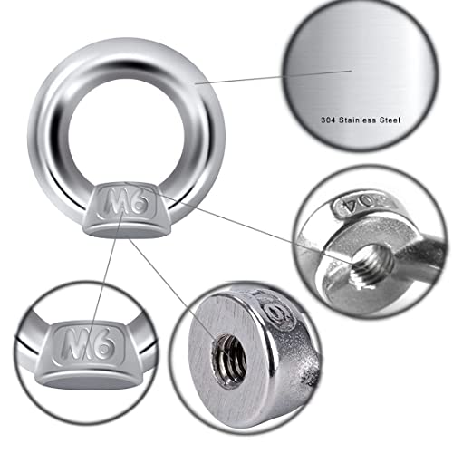 VIVIIHOO Dado a Occhiello in Acciaio Inossidabile M6 Anello filettato Dado a Occhiello Hardware Dadi a Occhiello Dadi a Occhiello per Accessori di sollevamento-12 Pezzi