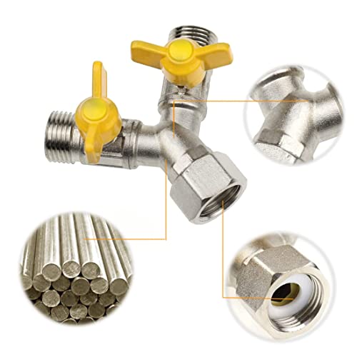 VIVIIHOO Distributore a Y in Ottone Valvola Adattatore a 3 Vie Valvola collettore a Y da 1/2 Pollice Adattatore Doccia per Lavatrice, Bagno, Cucina, Tubo da Giardino (7x8,5 cm)