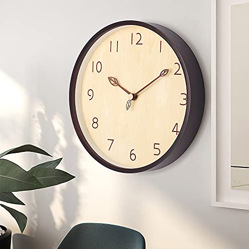 VIVILINEN Orologio da parete al quarzo 30 cm Movimento silenzioso senza ticchettio Design moderno Regalo di inaugurazione della casa Decorazioni per la casa Verde scuro (Marrone)