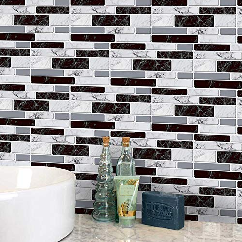 VIVILINEN 27 Pezzi 20x10cm Adesivi per Piastrelle Impermeabile PVC Autoadesivo Decorazione Adesivi Pavimento per Bagno Cucina Parete Fai da Te Marmorizzazione, Nero-Bianco-Grigio