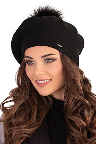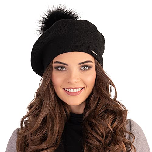 Vivisence Berretto Femminile Classico con Pompon 7035, Nero,Taglia Unica